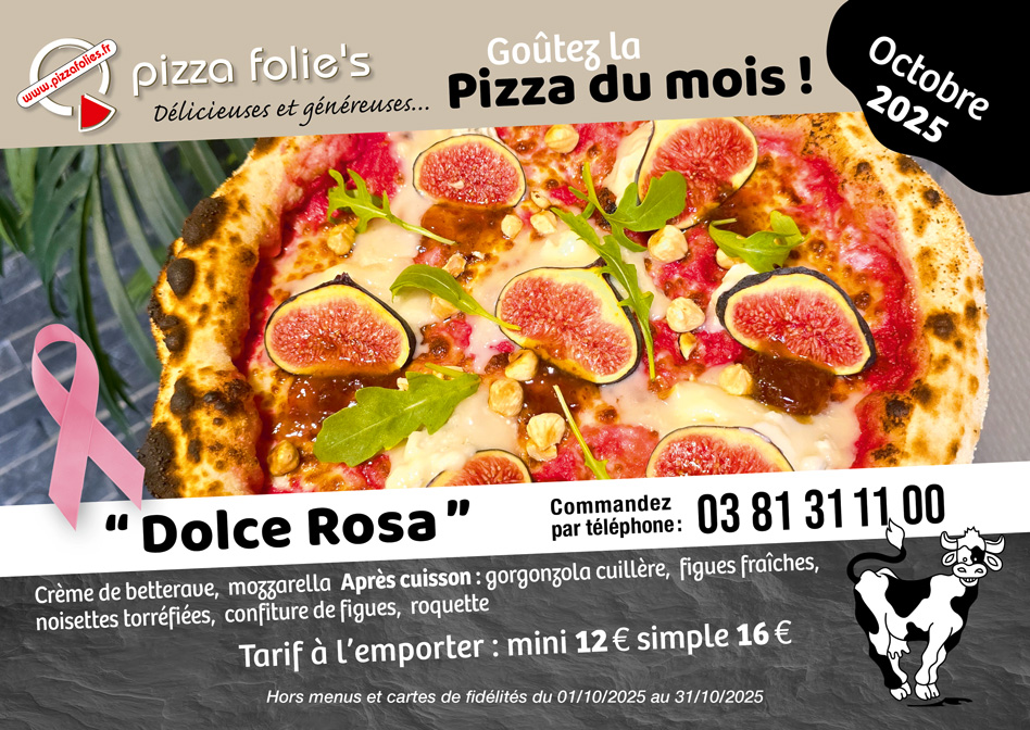 Depuis 1999 à Voujeaucourt, Pizza Folie’s vous régale avec ses « Délicieuses et généreuses » pizzas, pâtes, salades à emporter ou sur place. Un large choix de pizzas est proposé : « Traditions », « Gourmandes », « Étoilées » pour satisfaire tous les goûts.